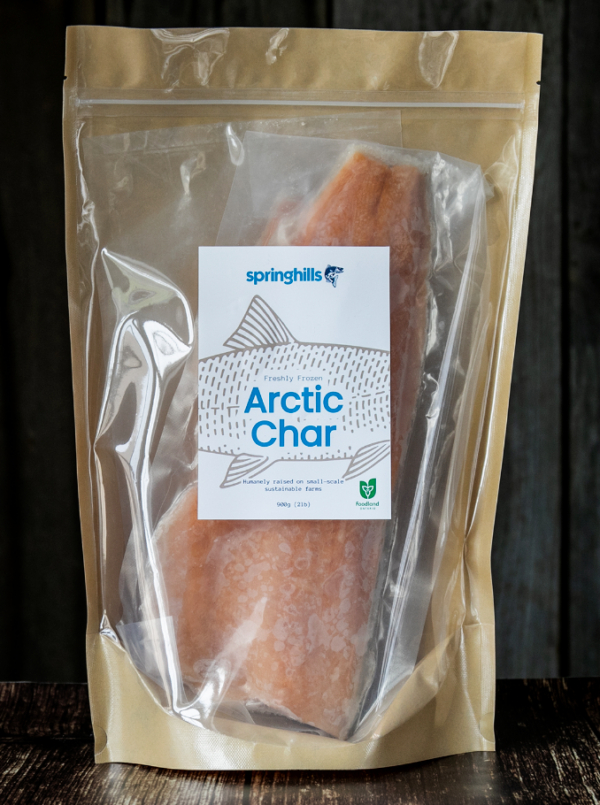 - Taste: Lighter and sweeter flavour than it’s cousins, trout and salmon. Grows in colder water giving it a thick skin perfect for barbecuing or frying.