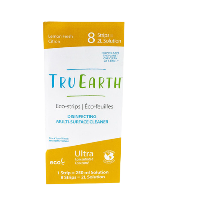 Tru Earth Removed the Water From Your Cleaner! Why ship water all over the world when you’ve got perfectly good water coming straight from your tap? Tru Earth Multi-Surface Cleaner strips contain all the cleaning power of big brand multi-surface cleaner, but with none of the water, and none of the plastic. Just toss a strip in a spray bottle, add hot water, and shake.